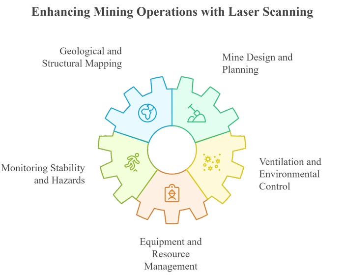 The application of laser scanning in underground mining is versatile and impacts every stage of the mining cycle—from exploration to safety management, through to mine optimisation and environmental monitoring.